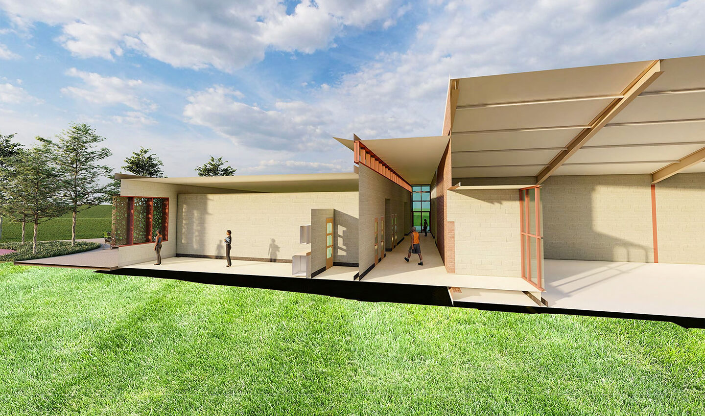 Olney’s site and new recreation building were designed to reflect the scale, materials, details, and color of the existing building and neighborhood fabric.