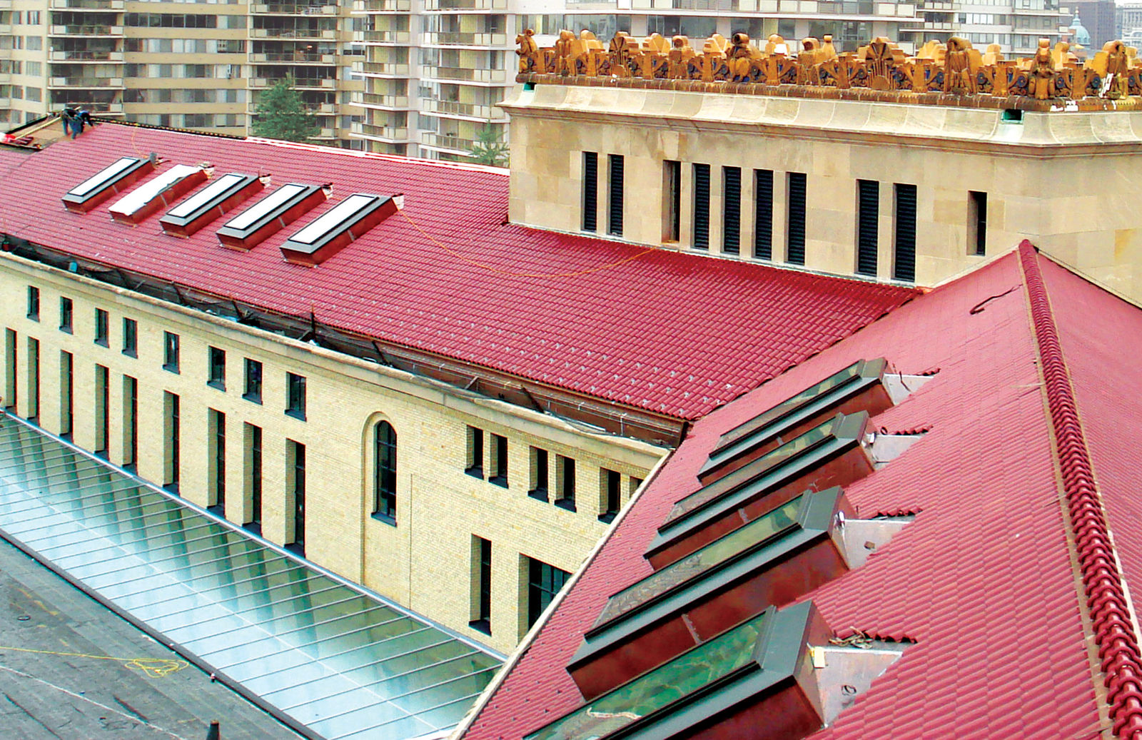 Kelly/Maiello was responsible for historic preservation of the exterior building envelope. The exterior restoration design team carried out extensive technical studies to determine the most effective treatment of the exterior elements, including paint and metal analysis, tests of the masonry, granite base, glazed terra cotta roof tile and cresting and mortar, and structural pullout tests of the concrete roof deck.