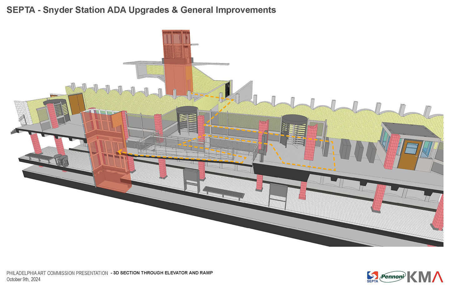 The scope of work includes two new elevators, upgrading communications equipment, installing updated wayfinding signage, modifying the fare gate layout to improve efficiency, and more. KMA is the architect of record as a subconsultant on Pennoni’s team. Construction on the $30.36 million project is anticipated to occur in 2025-2026.