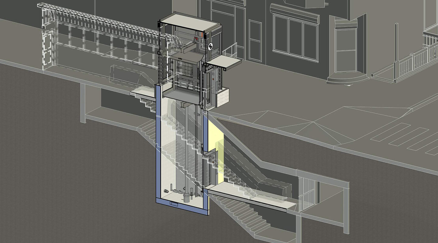 A new elevator between the mezzanine and platform level will also be added for ADA access between the mezzanine and platform levels. This new elevator will be located within an existing stair opening to eliminate any street level disruption during construction. To account for the stair that is being removed to make room for the new elevator, a new stair connecting the platform and mezzanine level will be constructed in the location of one of the previous stairs that was removed. The new stair location will require reconfiguring back-of-house areas and portions of the fareline fence.
