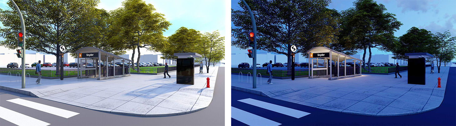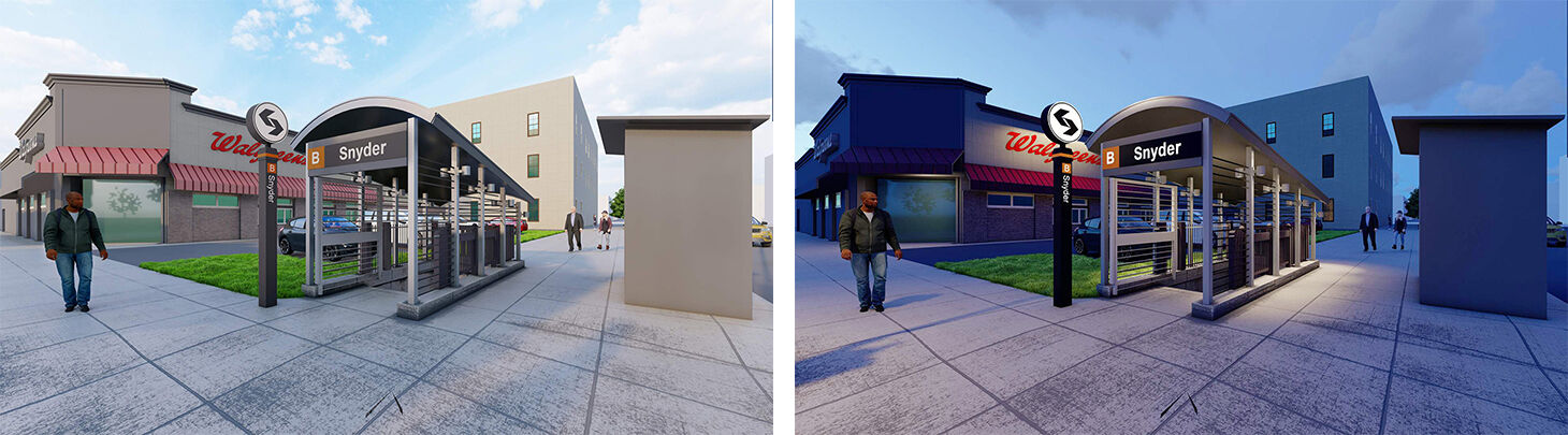 The northwest and southeast station entrances will be covered with new stair head houses that will also enclose the existing cast iron stair guardrails. The new elevator and stair head houses will be based on the SEPTA model being used at other stations throughout the transit system. New station signage, conforming to SEPTA’s systemwide standards, will be installed on the new head houses and throughout the station.
