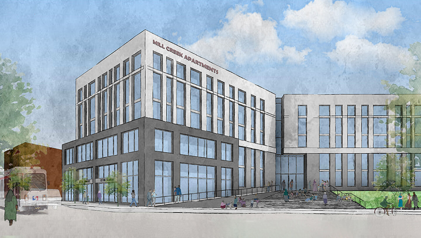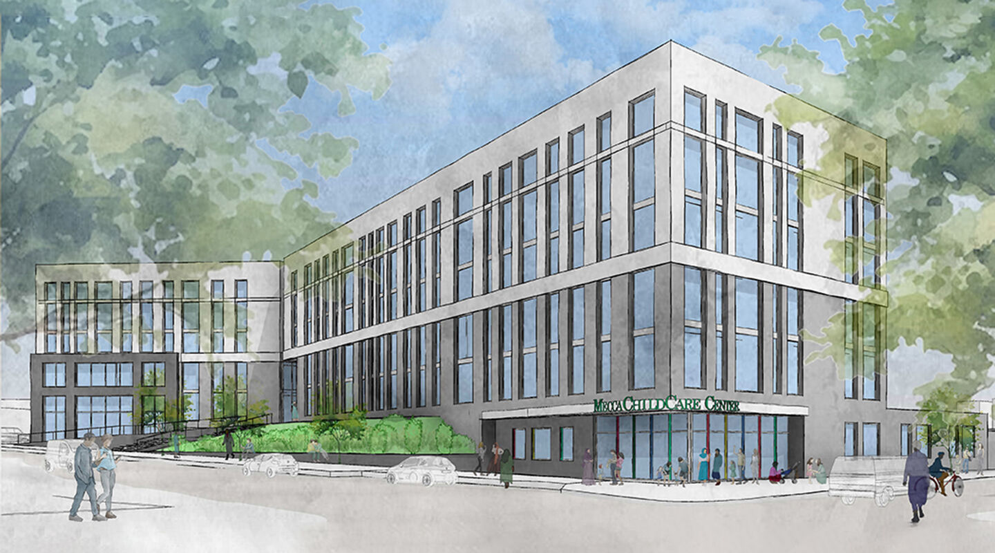 Slated for mixed use, 30,000 square feet on the ground floor will be reserved for commercial space, and the upper five stories will contain 100 mixed-income residential units ranging from efficiencies to one- and two-bedrooms. Half of the units will have private balconies. Potential uses to occupy the commercial space are a 10,000-square-foot early childcare center with dedicated outdoor play area and learning garden; resident fitness center; a food market; an urgent care clinic; and a multi-purpose business center.